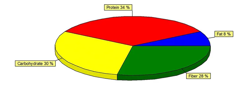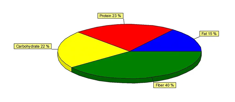 In the example diet the majority, 55% of the energy, is derived from fats and fibres. Such an energy balance is well suited for horses that can be over reactive and those that suffer from tying-up. All diets will contain the four major energy sources of protein, carbohydrate, fats and fibres as all are present in both forages and feeds. The balance between them is dependent on the composition of the hard feed chosen.
