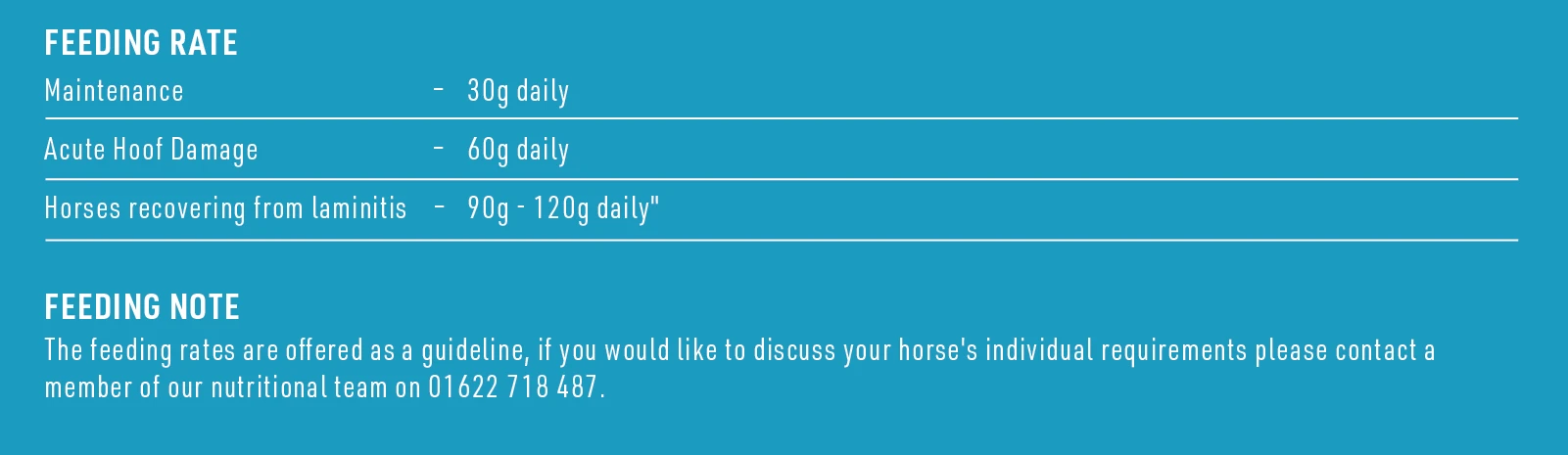 Feeding rate can be safely increased for cases of acute hoof damage.