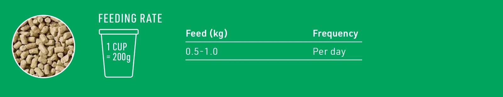 High fat (rice bran), low starch, stabilised, palatable, with BMC® for bone and gut support.