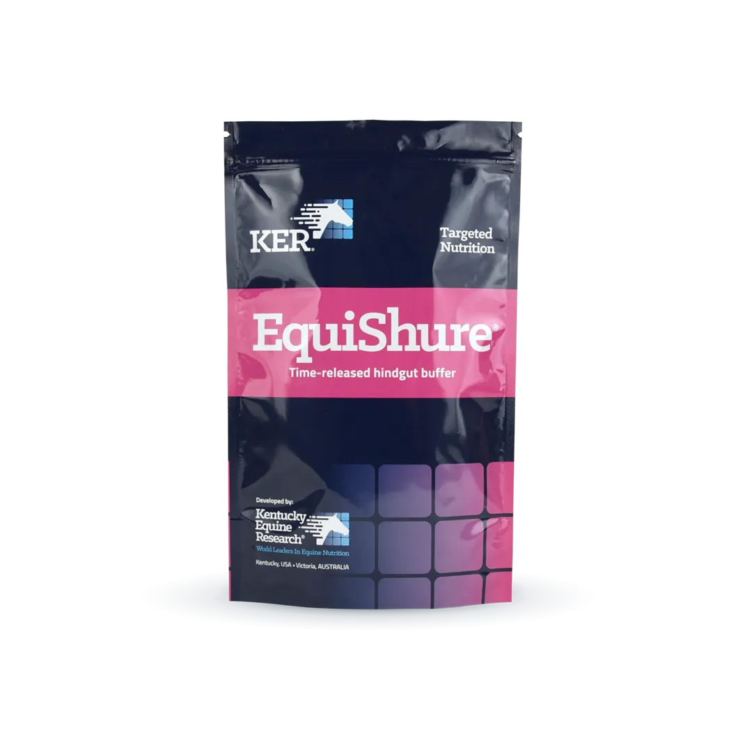 A research-proven, time-released hindgut buffer, EquiShure takes 6 hours to be released and a full 24 hours to be completely broken down in the hindgut. It can be used strategically when horses are travelling, or at any time when normal feeding patterns are compromised.