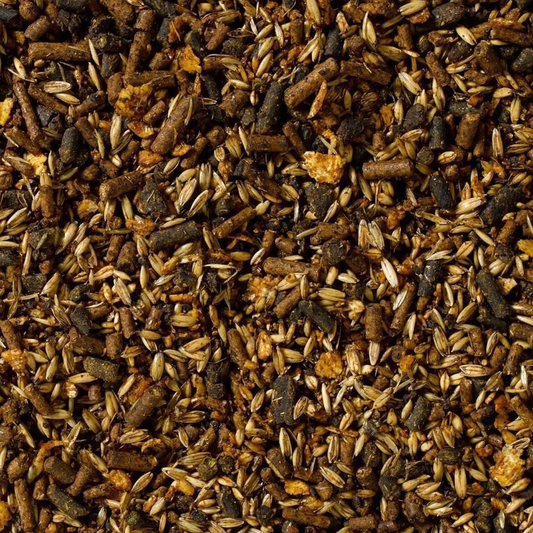 Crude Fibre - 13.0%, Crude Protein - 14.0%, Lysine - 0.70%, Methionine - 0.20%, Crude Oil - 6.5%, Crude Ash - 9.0%, Starch - 16.5%, Sugar - 7.0%, Digestible Energy - 12.5 MJ/kg