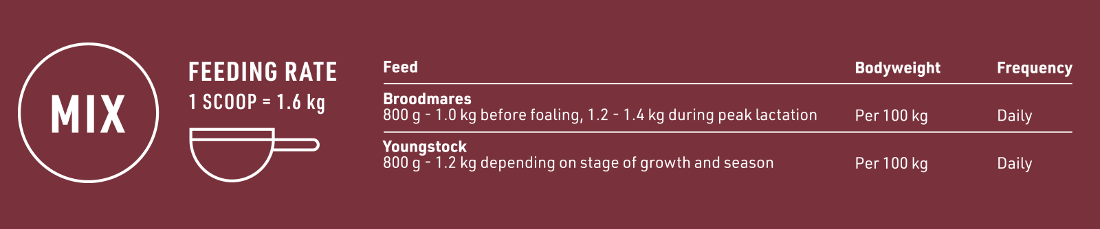 Use as a foal creep feed, for weanlings and yearlings up to two and three-year-olds, and mares that can get heavy in pregnancy, approaching foaling.