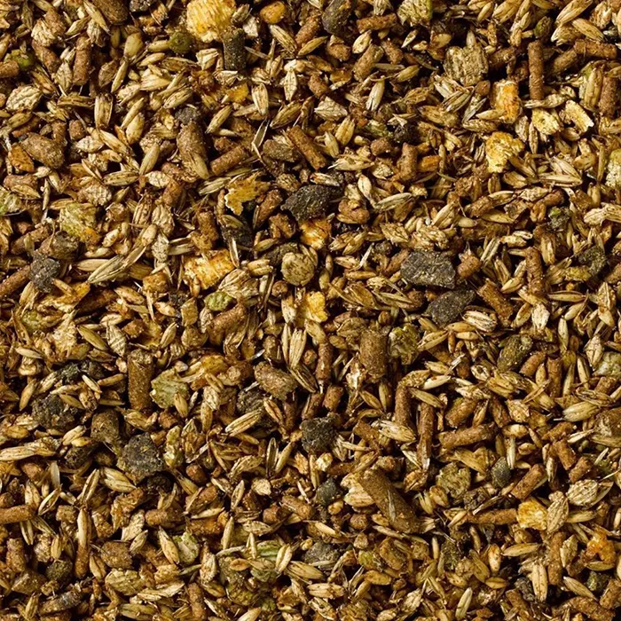 Crude Fibre - 10.0%, Crude Protein - 14.5%, Lysine - 0.68%, Methionine - 0.21%, Crude Oil - 4.0%, Crude Ash - 7.8%, Starch - 27.0%, Sugar - 5.0%, Digestible Energy - 12.5 MJ/kg