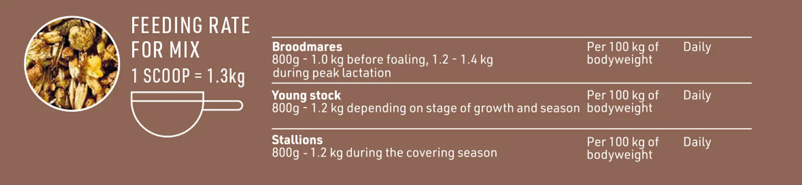 A versatile feed that covers the daily requirements of breeding horses and youngstock.
