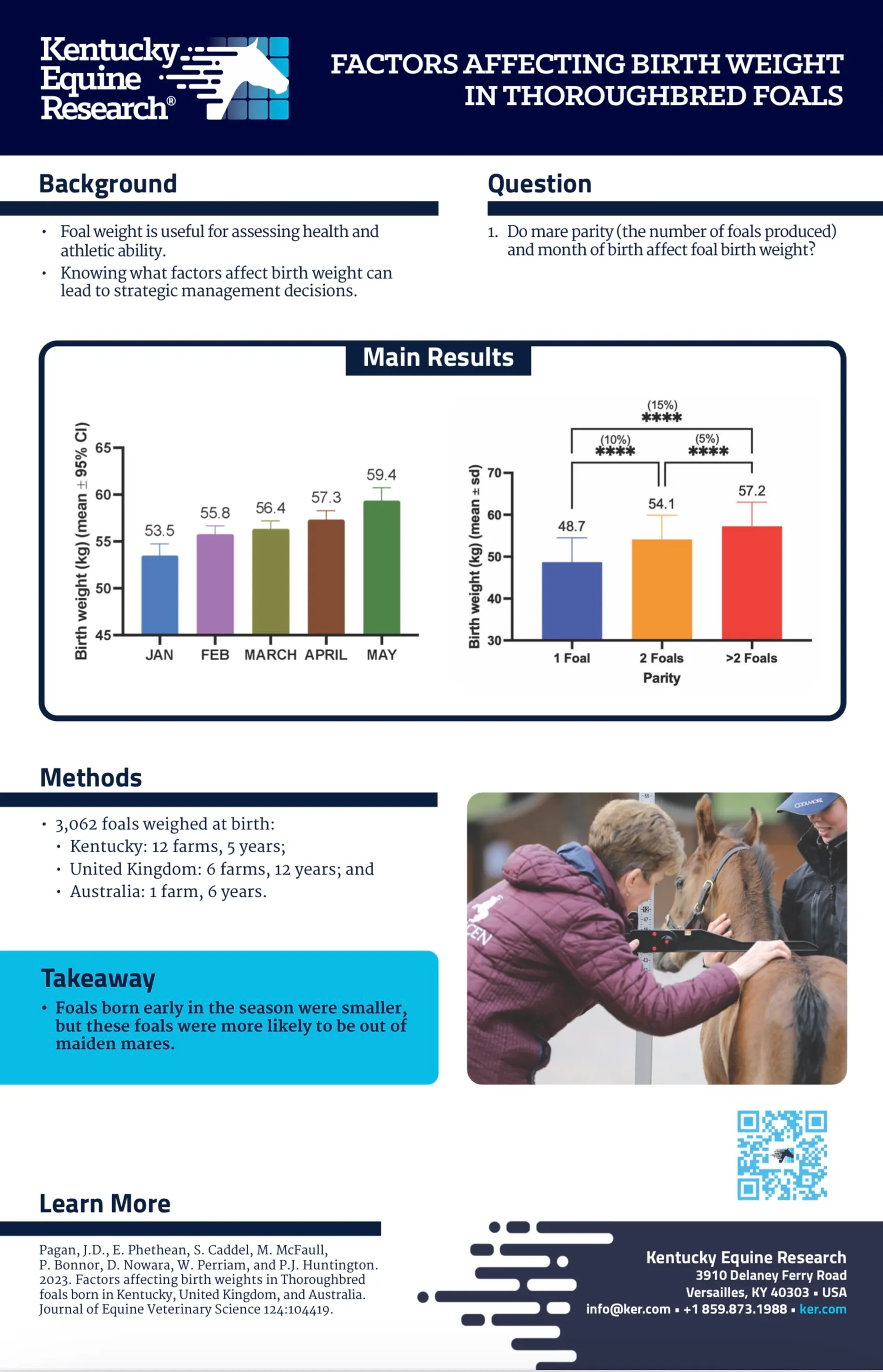 For the past 35 years, Kentucky Equine Research (KER) has studied growth in Thoroughbred horses. They have analysed growth records from over 50,000 foals raised in prominent breeding regions around the world.