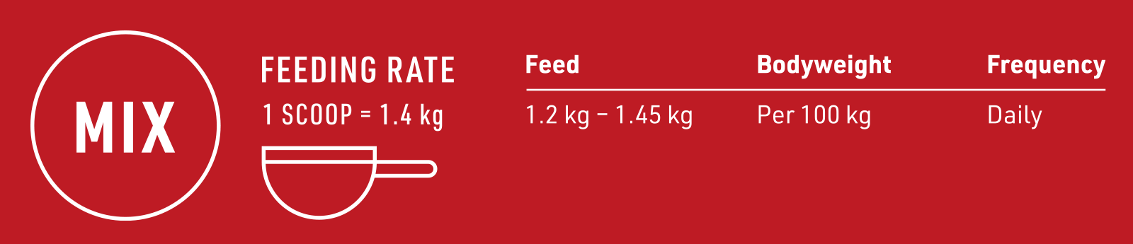 It works especially well for horses with a more compact body type to maintain racefit condition and to hold their bodyweight and muscle mass.